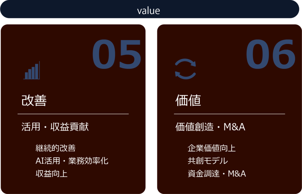 私たちは、戦略を立てるだけの「外注先」ではありません。自社で開発リソースとPMO機能を保有することで、「描いた戦略を、自ら形にする」責任を負います。